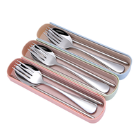 Taşınabilir kullanımlık paslanmaz çelik çatal bıçak kaşık seti çevre dostu klasik tasarım çubuklarını buğday kutusu ile kaşık çatal geri okul için